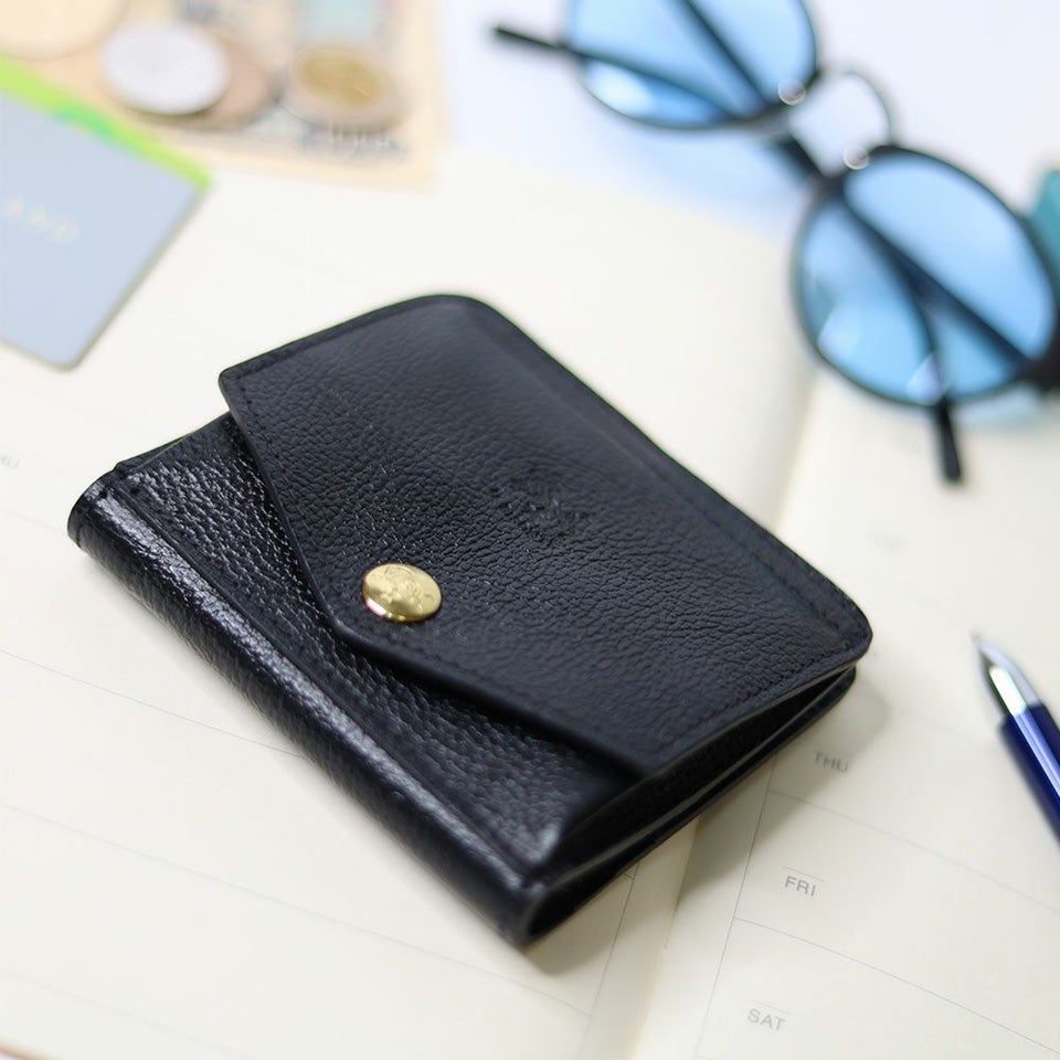 スクエア型のすっきりした二つ折りデザインで、バッグの中に入れても場所をとらずスマート。デイリーに活躍する万能アイテムです。