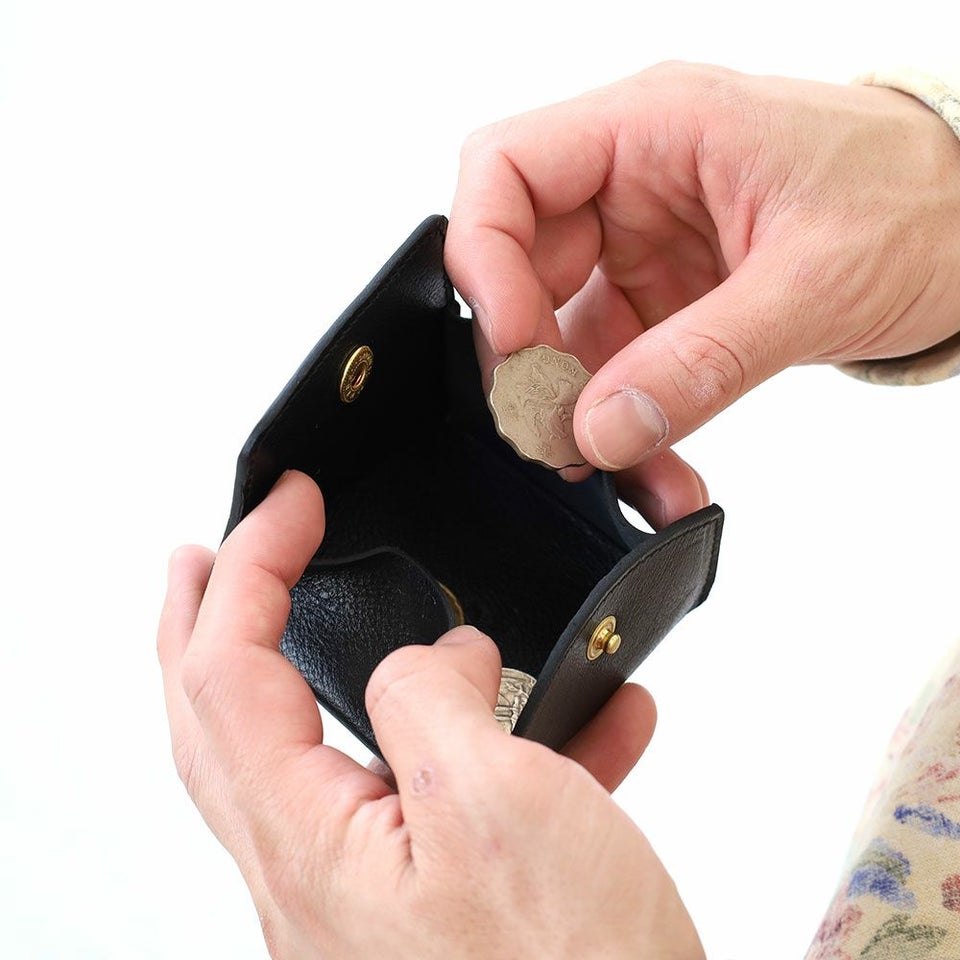 シボのある上質な牛革を使用したコインパース。フラップ部分に