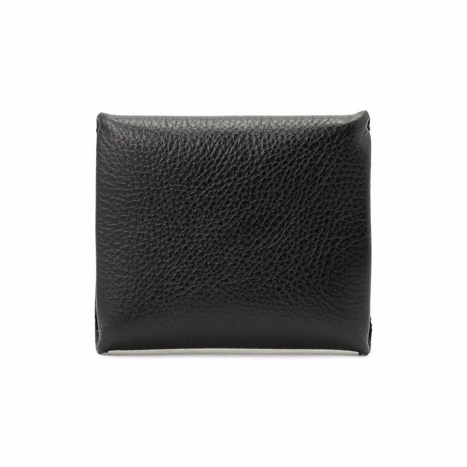 シボのある上質な牛革を使用したコインパース。フラップ部分にロゴを型押ししており格調高く仕上げています