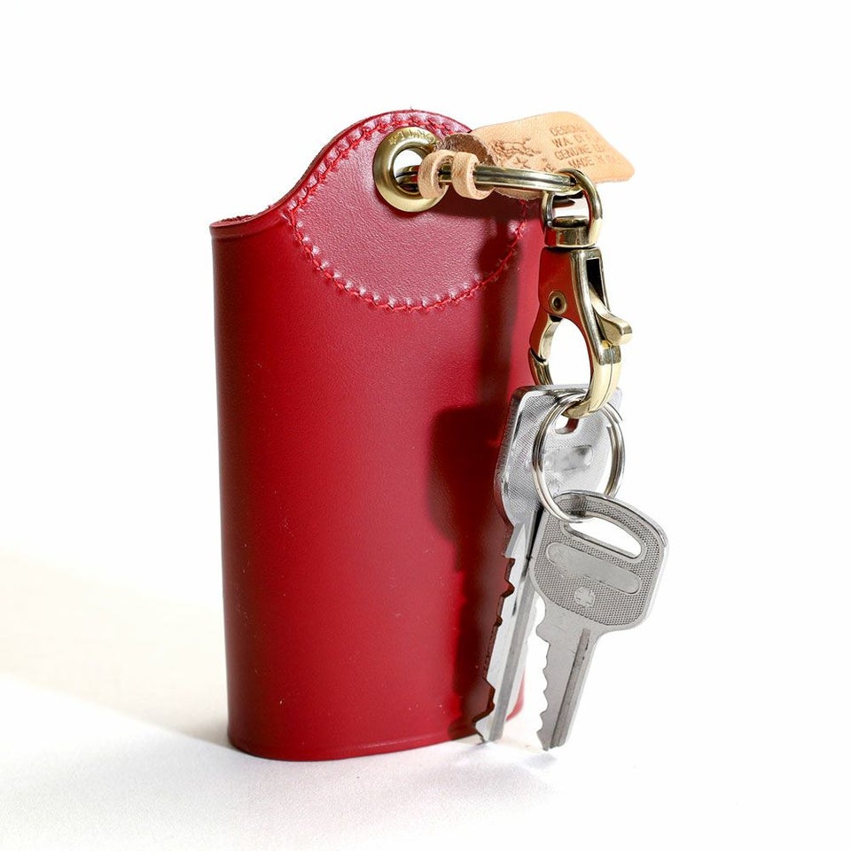 車のリモコンキーにも対応するよう、厚みをとってデザインされたキーケース。