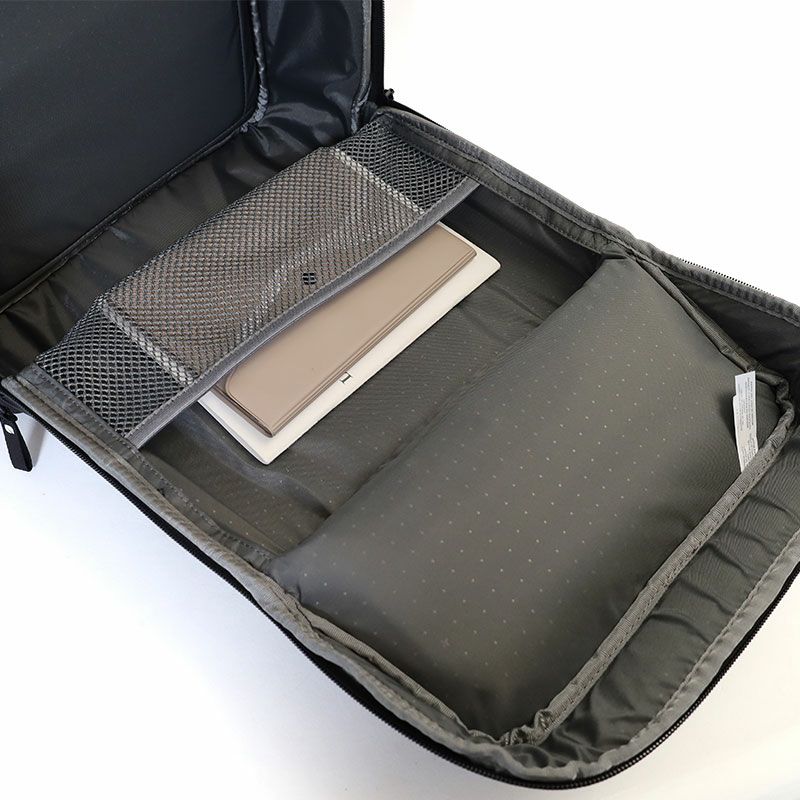 メイン収納背面にはPC・タブレット収納可能なポケット付き。