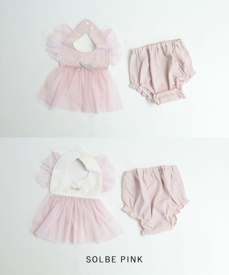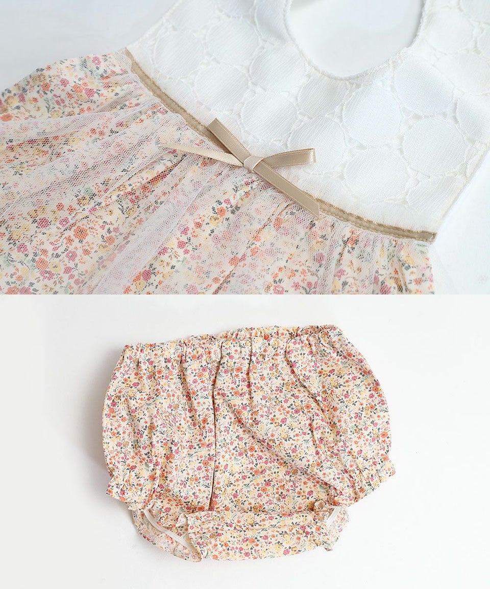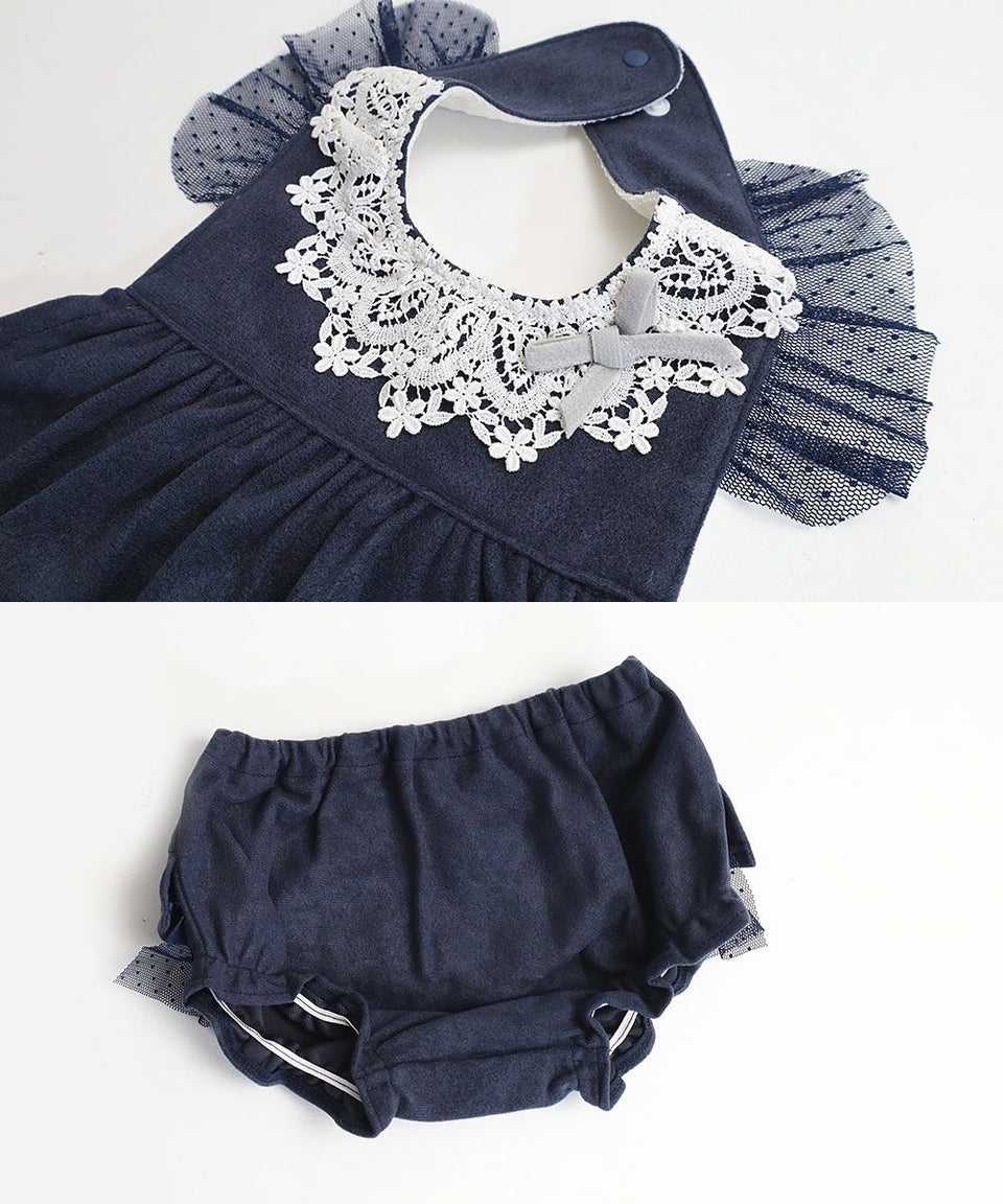ラッピング無料 女の子の初めてのおめかしにスタイ&ブルマセット 6か月頃~2歳頃