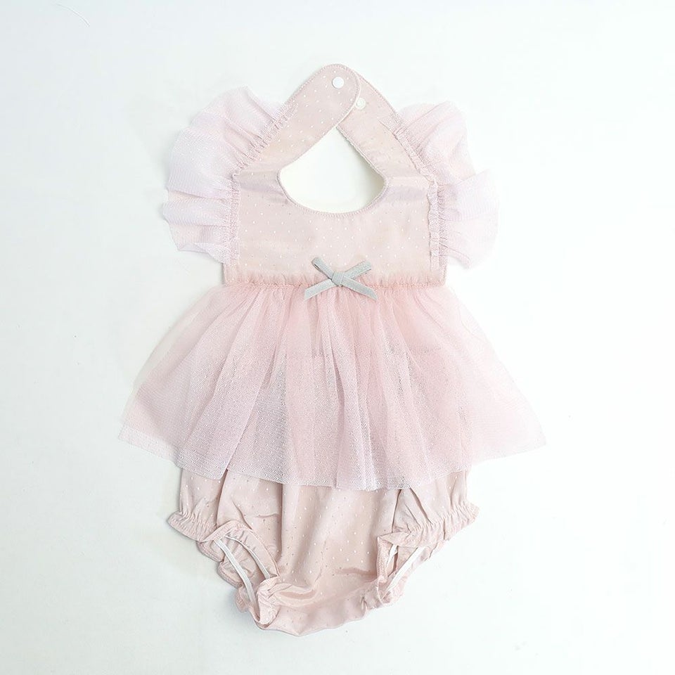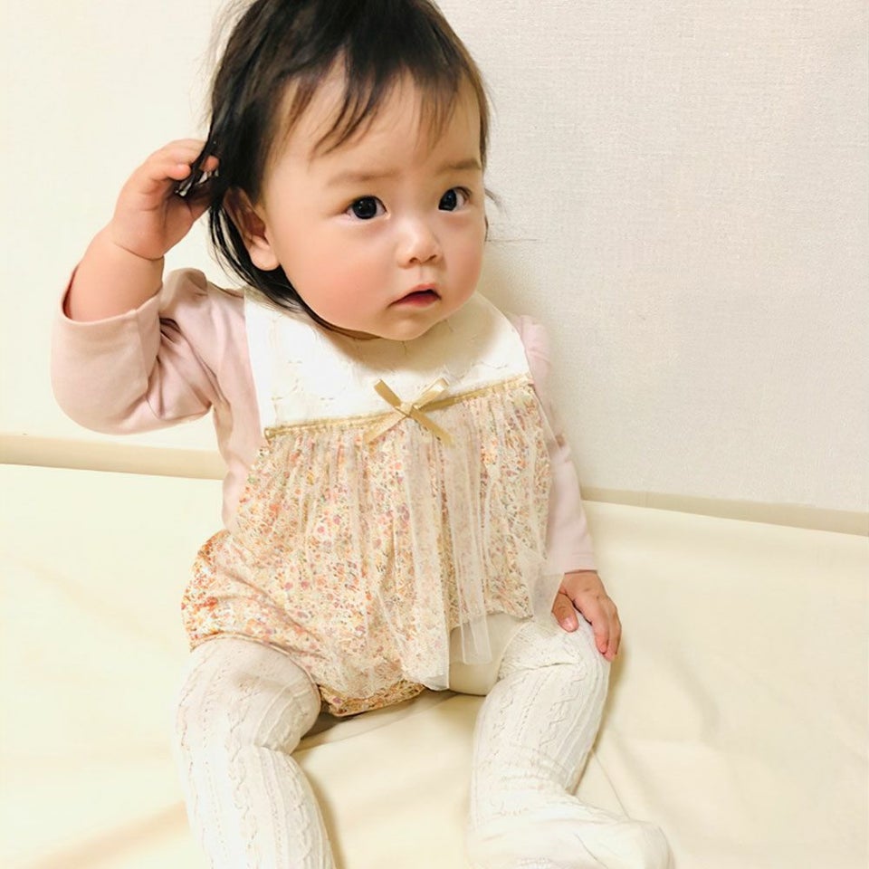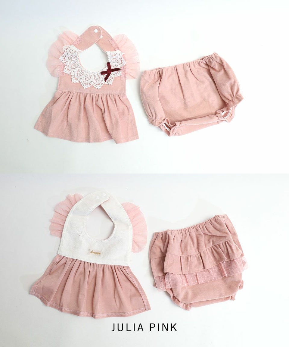 ラッピング無料 女の子の初めてのおめかしにスタイ&ブルマセット 6か月頃~2歳頃