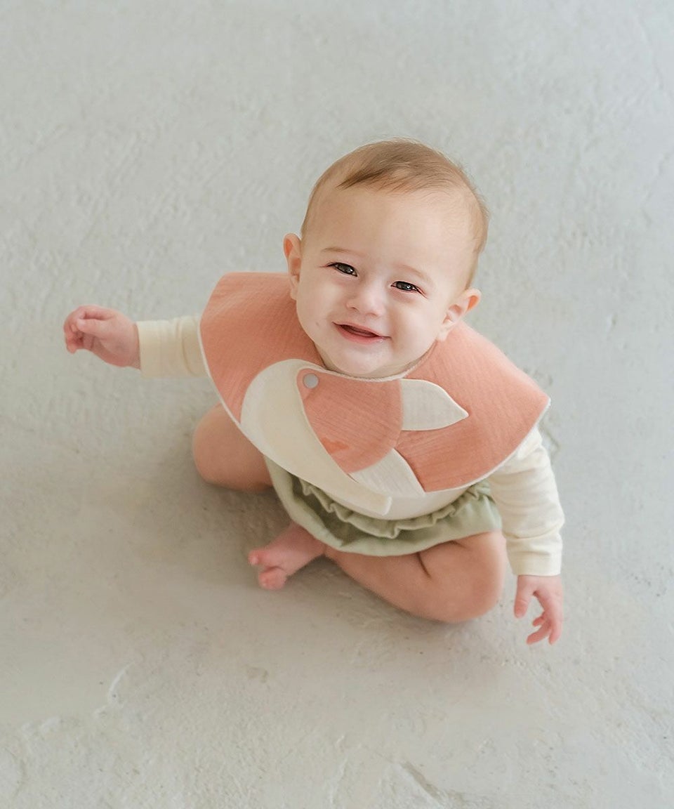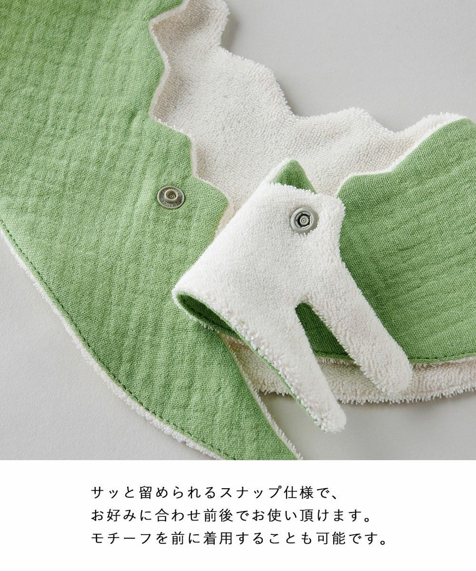 赤ちゃんの肌に優しい綿100%のガーゼ素材、裏面は吸水性抜群のパイル生地を採用しています。