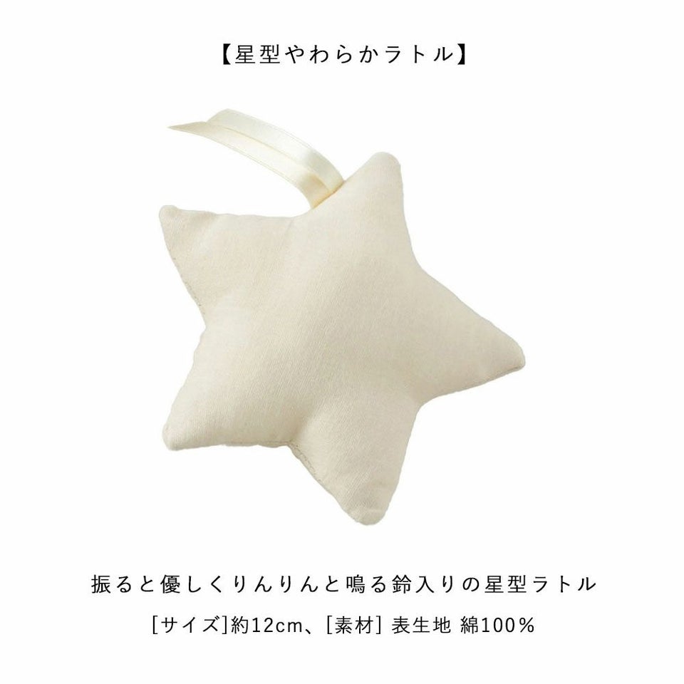 振ると優しくりんりんと鳴る鈴入りの星型ラトル。