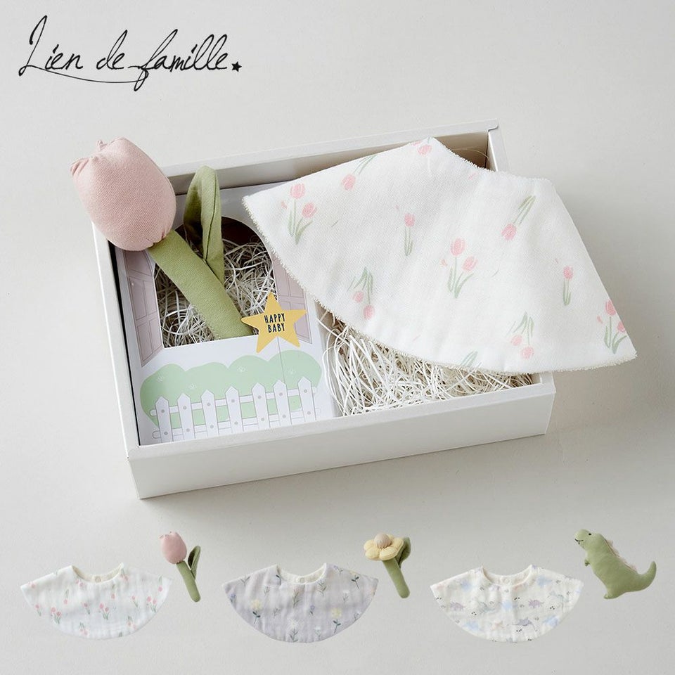 シリーズ案内 ママがつくるベビーグッズブランド「Lien de famille」のスタイとラトルのギフトセット
