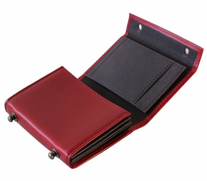 内装の主要部は独特の素材感を出したピッグレザーカラー、お金などが触れる部分には汚れを目立たせない同系色の綿を配しています。厚さが25mmのタイプで、おおよその容量はお札10枚・コイン大小15枚・カード類15枚程度になります。