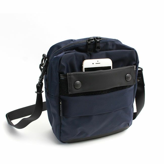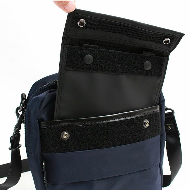 マット調のゴムライクな雰囲気が特徴的な素材となります。付属レザーは、日本皮革技術協会の 13 種の基準がある有害物質検査(JES)済みで人体に有害な物質・六価クロムを一切使用せず、ベジタブルタンニンで鞣されたエコカウレザーを使用しています。ポケットを多く設けているため収納力も高く、防水生地で作られた着脱式のポケットにはビニル袋を固定するためのホックが取り付けてあり、汚れたものを他の荷物と分けて持ち運ぶことが出来るなど機能面も充実しています。デザイン性と機能性を併せ持ったカジュアルバッグのシリーズです。