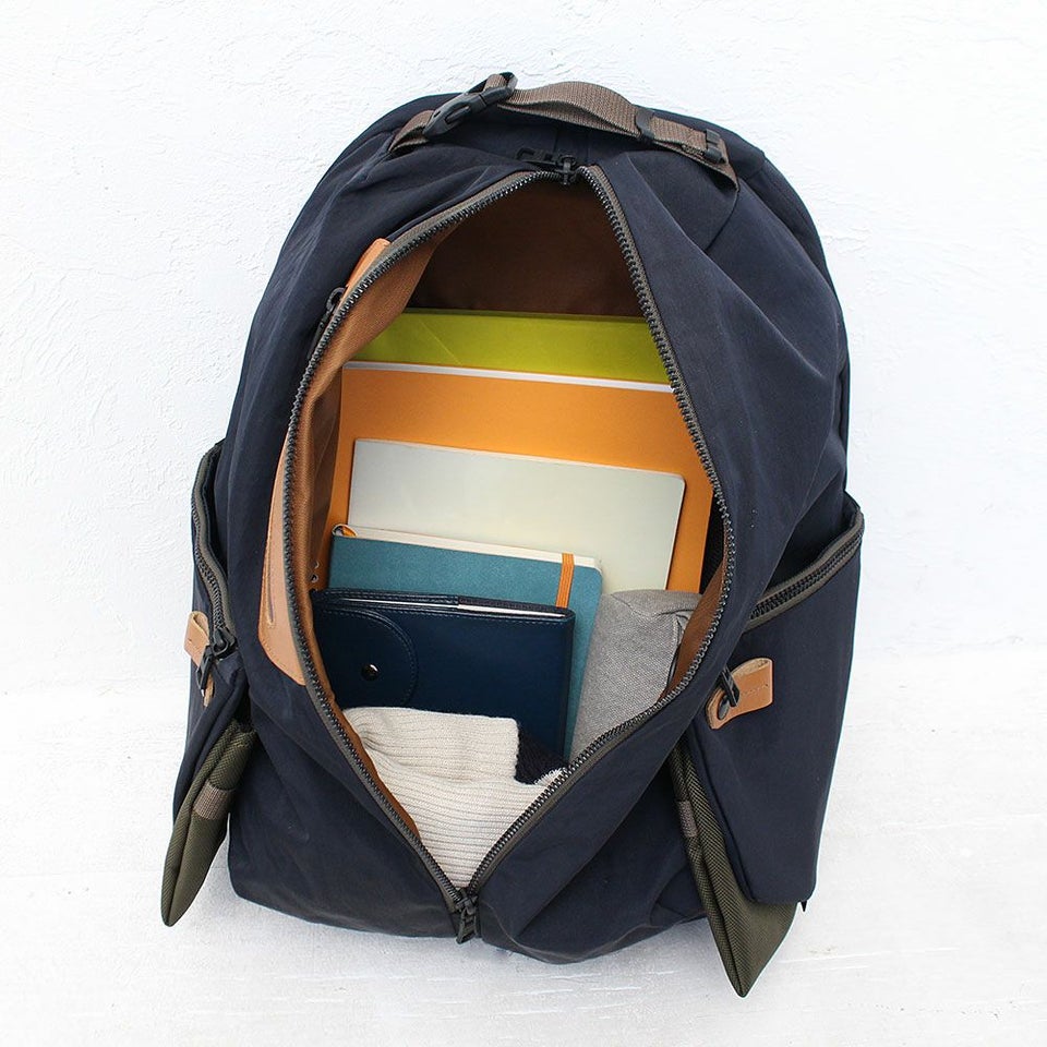 ・本体素材はタテ糸 110d ヨコ糸 210d を用いた、生地は自然なシワ感と落ち着いた光沢感があるナイロンツイル。