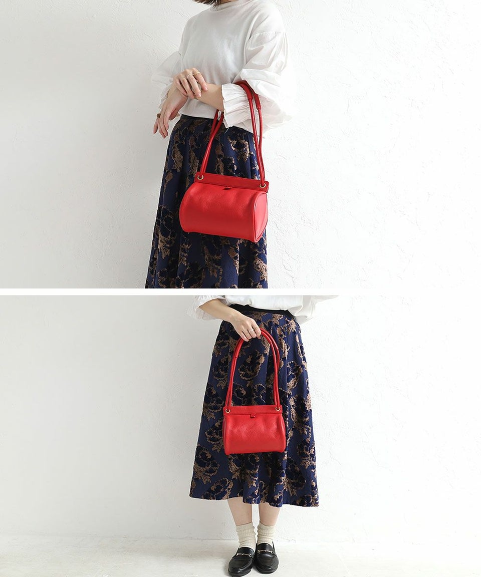 ハンドルは2way仕様で、2本手では肩掛けで、1本手では斜め掛けで持つことができます。