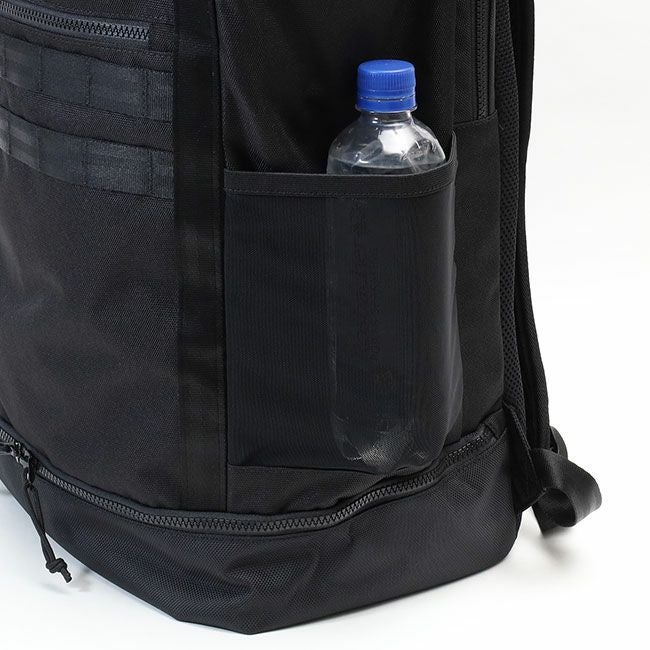 両サイドには、500mlのペットボトルが余裕で収まるメッシュポケットを装備。折りたたみ傘などの収納にも便利です。