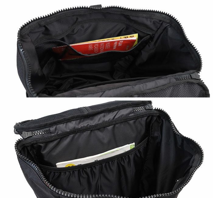 上部にはスマホや定期など、すぐに取り出したい物の収納に便利なファスナーポケットを装備。