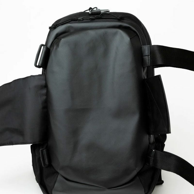 スケートボードやアウトドア備品などを外側に取り付けることができるアーバンパック