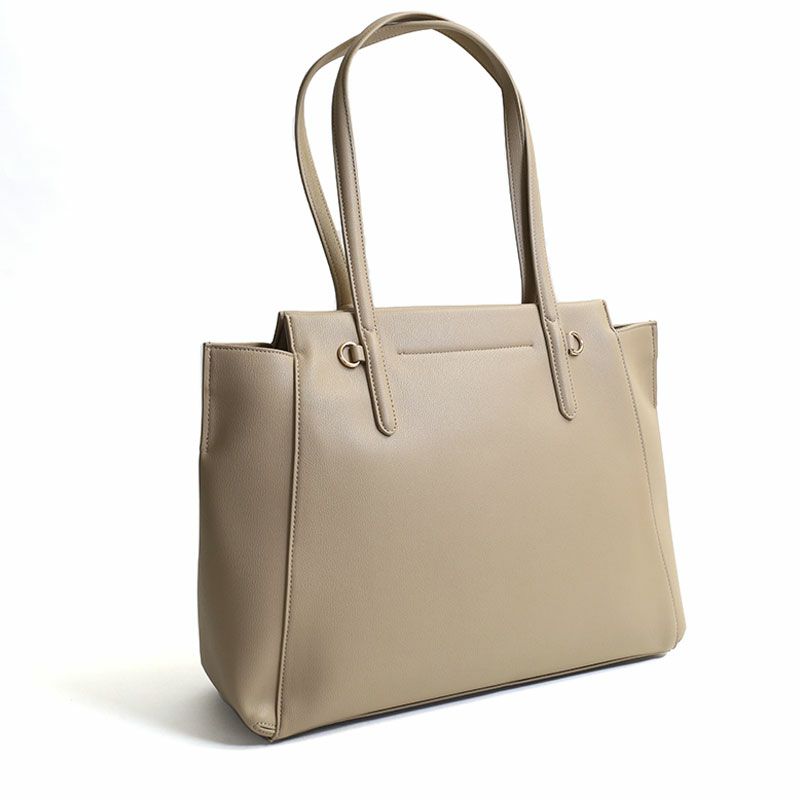 落ち着いた風合いと、PCポケット、キャリーハンドル通しベルトなどデザイン性と機能性を充実させたON/OFFシームレスな女性向けバッグ。