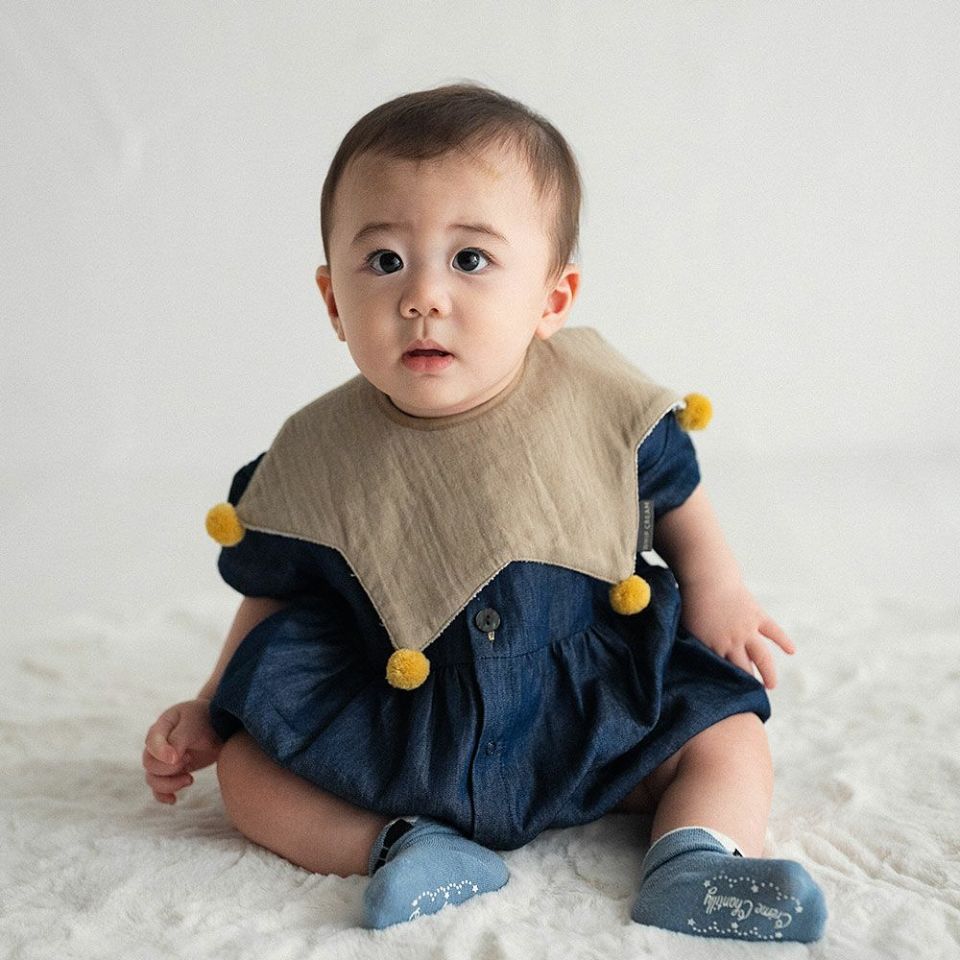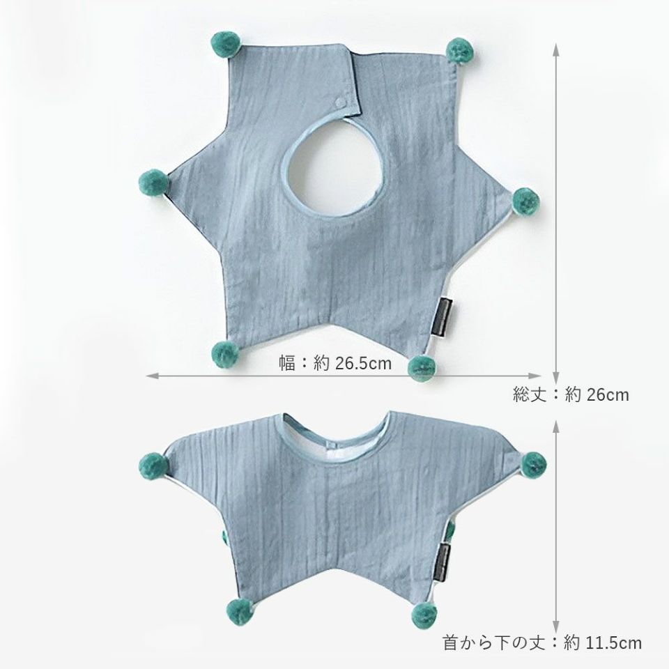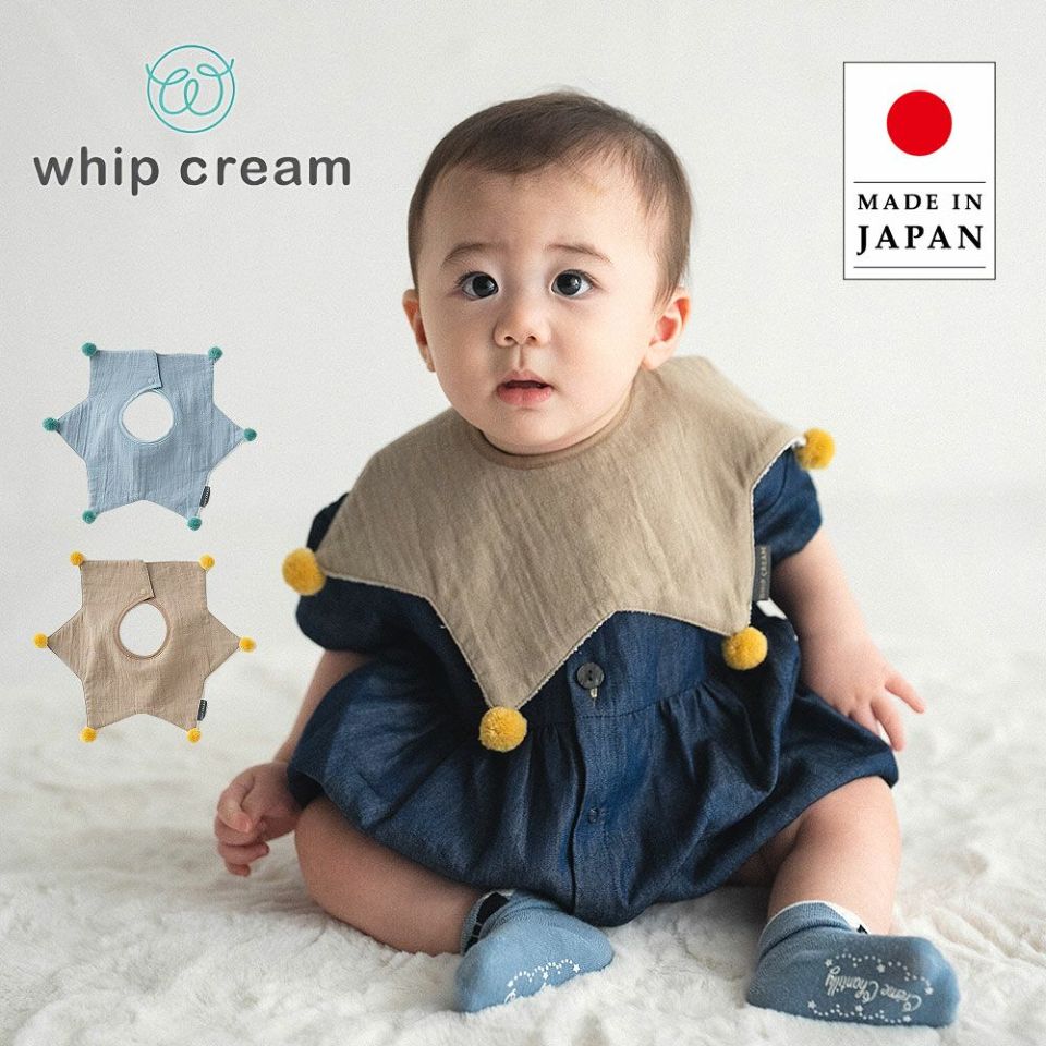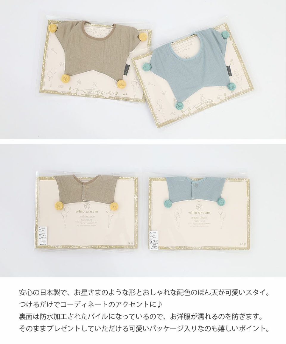 ラッピング無料 ホイップクリーム 安心の日本製 お星さまのような形とおしゃれな配色のポンポンが可愛いスタイ 裏面防水