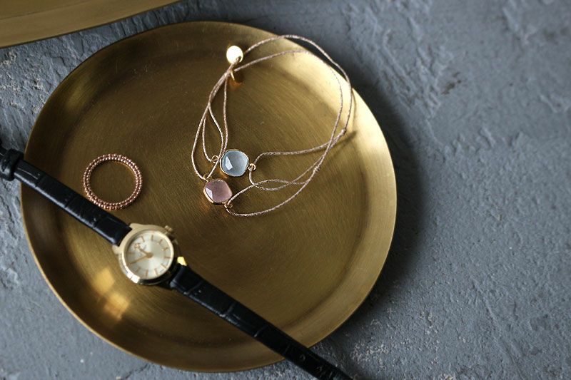手首になじむワイヤー糸のピンクゴールドカラーが手に馴染み、