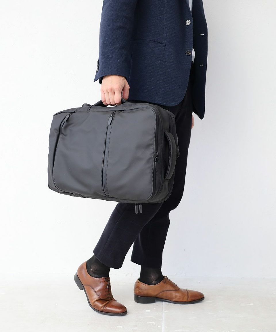 止水ファスナーとオールブラックのパーツがクールな印象の、シンプル×ハイスペックなビジネスバッグです。