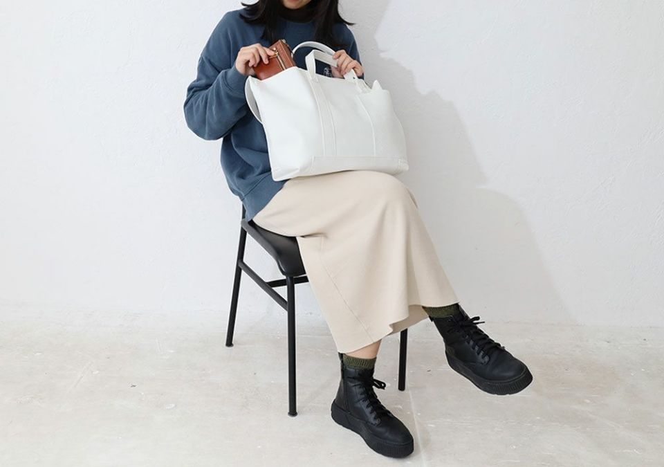 マイクロファイバー『ウルトラスエード』を使用したミディアムサイズのトートバッグです。