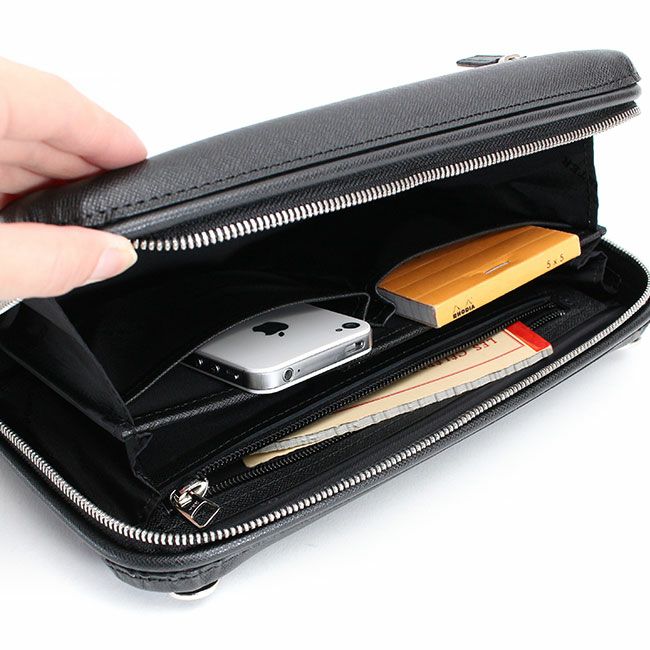 開口部のファスナーは下まで大きく開くため物の出し入れがしやすく、その際に胴版は完全には倒れないためスペースが限られている電車の座席などでも使いやすく、