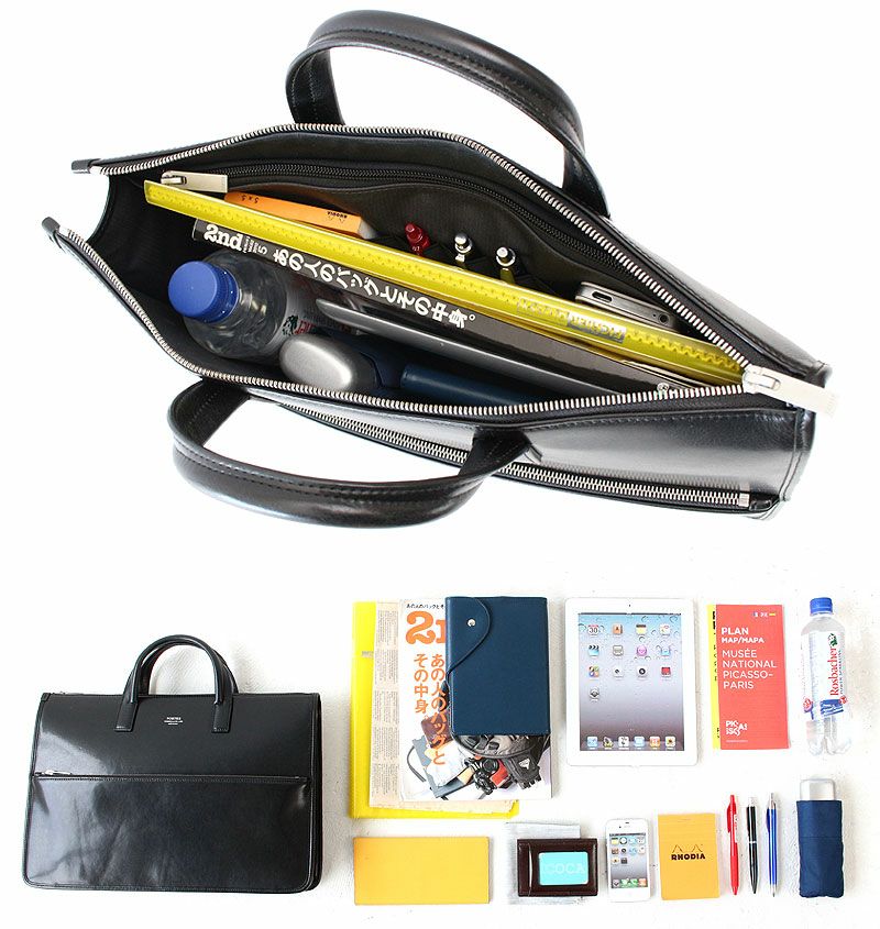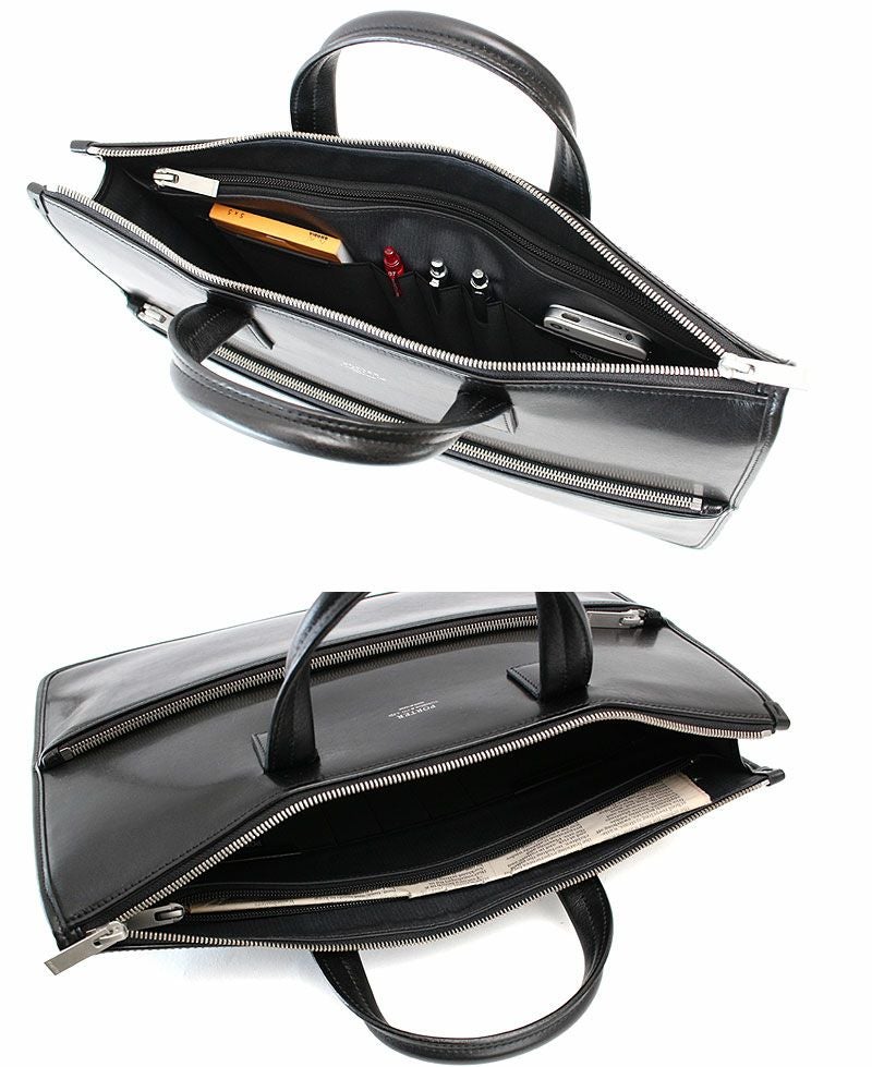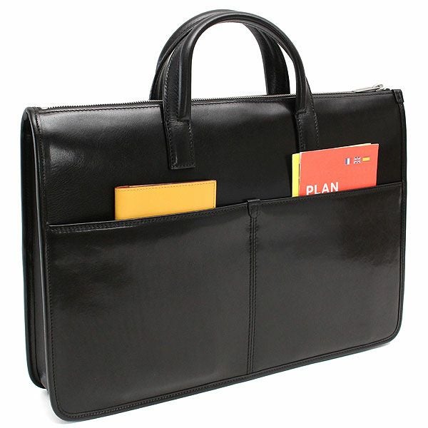 クラシックで落ち着いた見た目ながら、内装には細かなポケット、ペンホルダーなどビジネスツールを細かく分類できるポケットを完備。