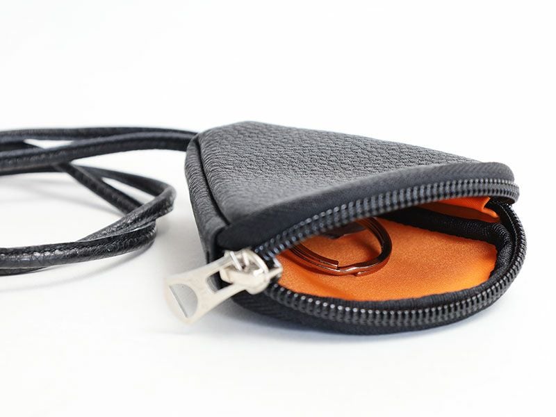 キーパックはアクセサリーのように首から掛けて鍵を携帯できるアイテムです。内装に付属する2重リングに、スマートキーなどの大きな鍵を取り付けて収納できます。
