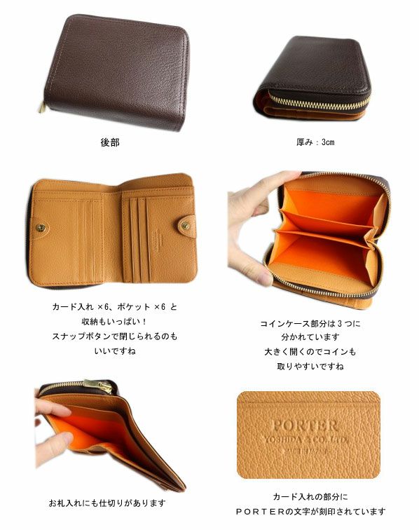 コンビネーションが目にも鮮やかなポーターのシリーズ『ダブル』!内側のスナップボタンを開けると中にカードスペースが6ヶ所あり、さらにポケットも6ヶ所で大容量の収納にもかかわらず見た目はすっきりなデザインもセンスが光っています!