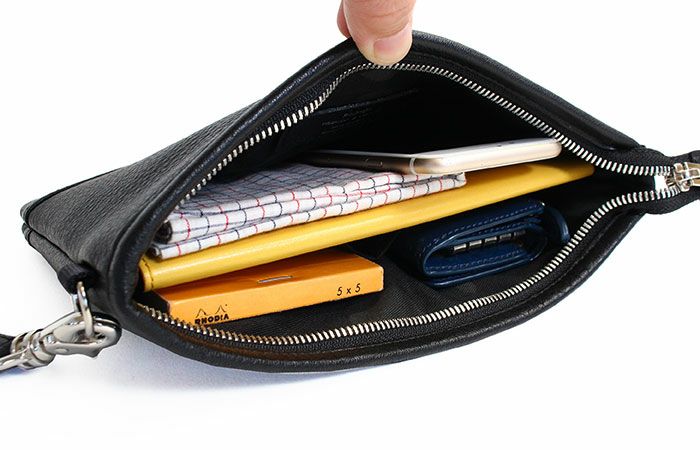 スマートフォンやコインケースなど細かなアイテムの収納に便利です。