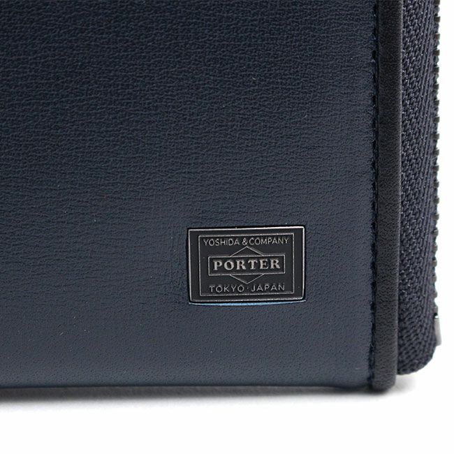 また内装は素材の異なる2種類の革を箇所によって使い分けているので、より贅沢なつくりとなり高級感を高めています。ファスナーは高級感があり手当たりも良いエクセラファスナーを使用しています。表面にはヘリの革の色と合わせたPORTERネームのオリジナル金属プレートを採用し、表革に埋め込むことで見た目をスッキリとさせました。