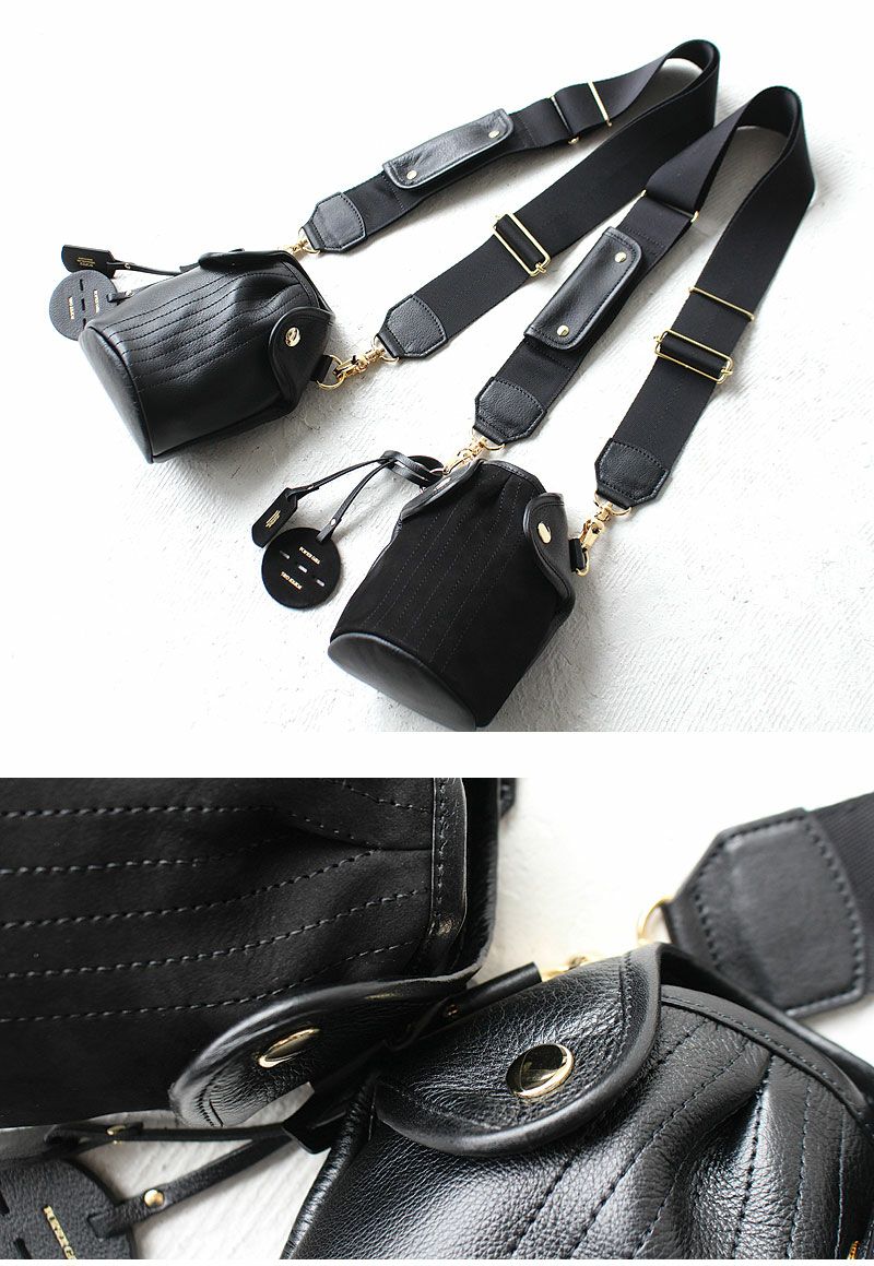 また、ショルダーストラップのナスカンなどの金具使いやカバンの底部分に施したステッチワークなど、シンプルなデザインながらも存在感のある佇まいも魅力的です。