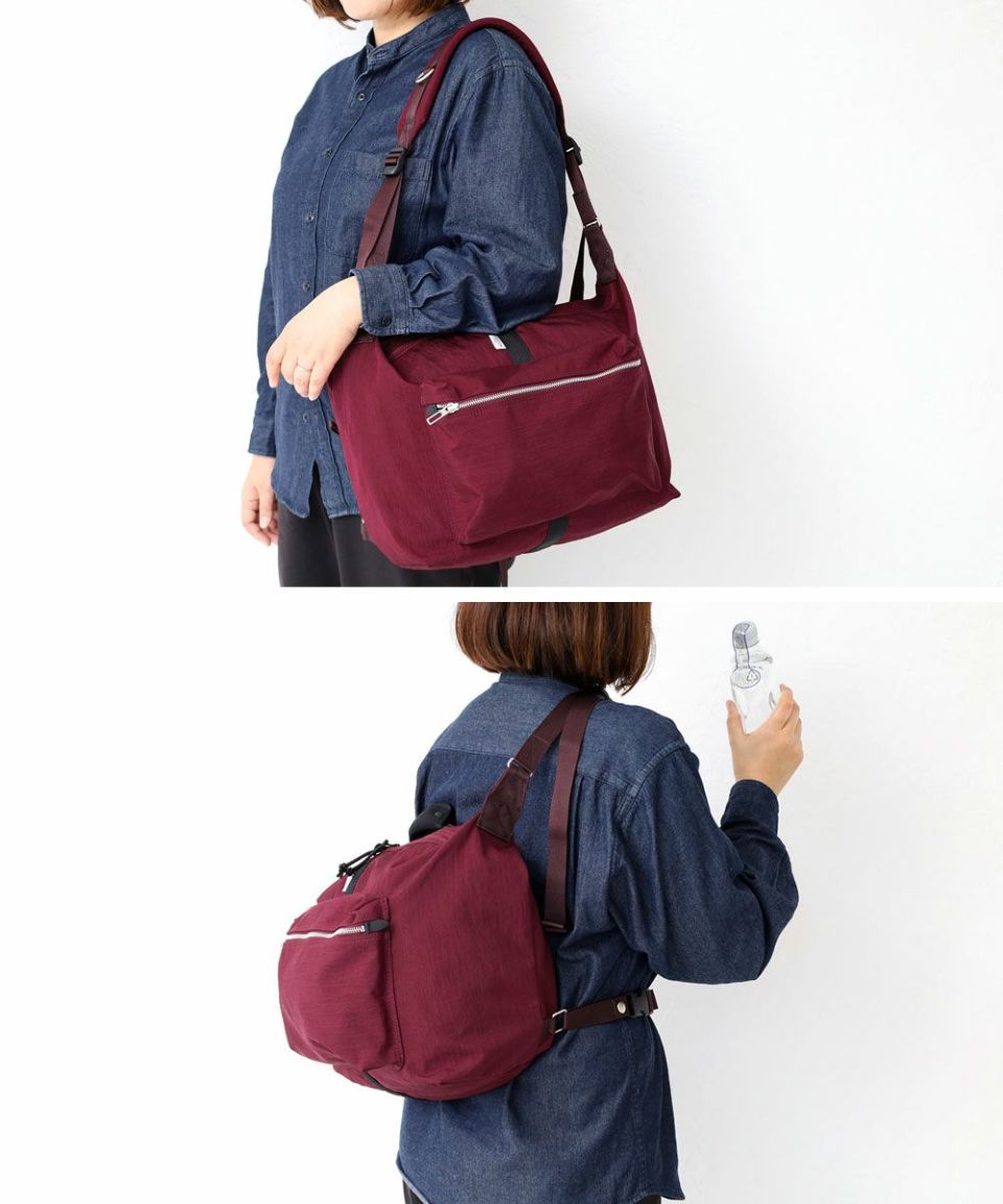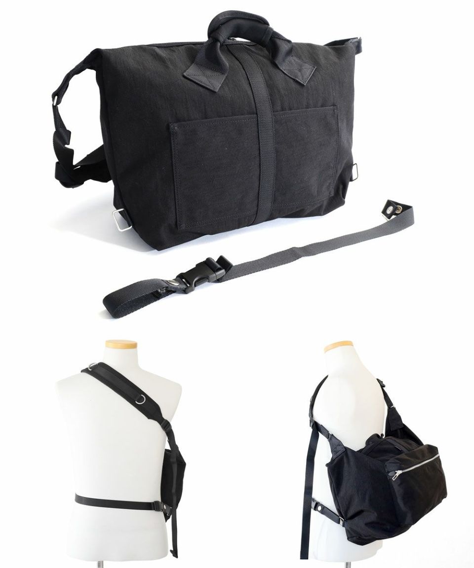 自転車に乗る際などにメッセンジャーバッグのように使用できるアイテムです。