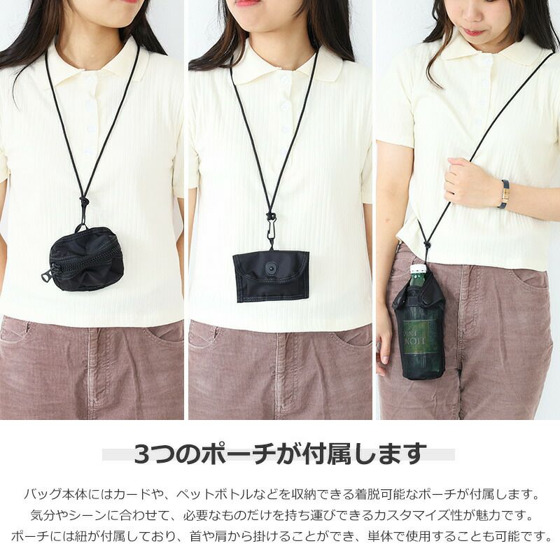 ポーチには紐が付属しているため首や肩から掛けることができ、単体で使用することも可能です。