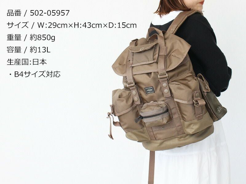 メイン素材に66ナイロンを超高密度に織り上げたPORTERオリジナルの生地を採用しています。