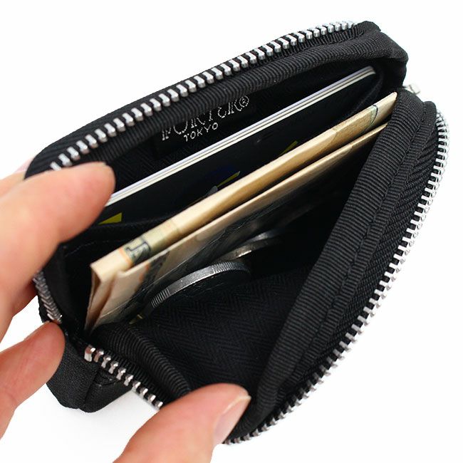 小銭、折り畳んだお札、カード類を最低限に管理できる設計です。