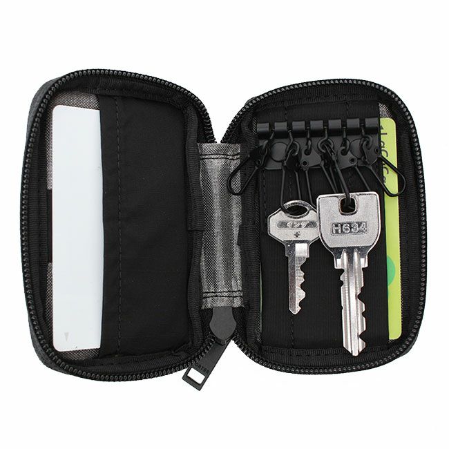 収納部には6連のキーホルダーを設けtており、車のスマートキーもちょうど収まるサイズ感です。