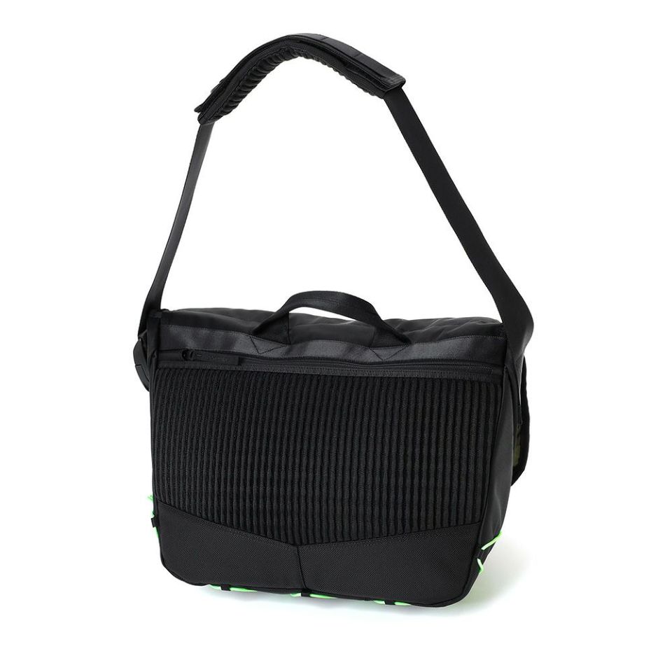 背負った時に目を引く底部のストレッチコードは伸縮性があり、衣類や折り畳み傘などを 簡易的に収納するのに便利な仕様です。各アイテムには、ビジネスシーンにも対応するブラックとスポーティーな印象の蛍光グリーンの2色のストレッチコードが付属し、気分によって付け替えを楽しんでいただけます。