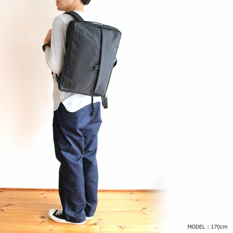 シンプルなルックスながらも高い機能性を備えており、メイン収納にはノートPCやタブレット端末を