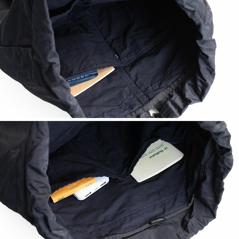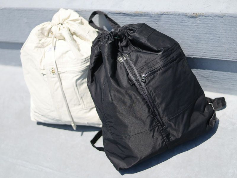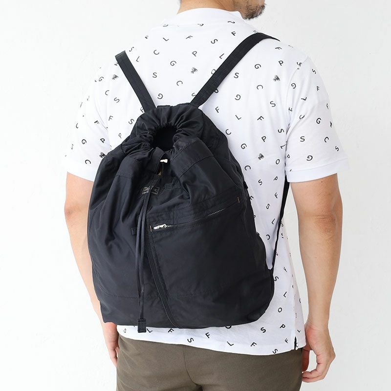 メイン収納部が口元のドローコードによって開閉できる仕様のナップサックです。