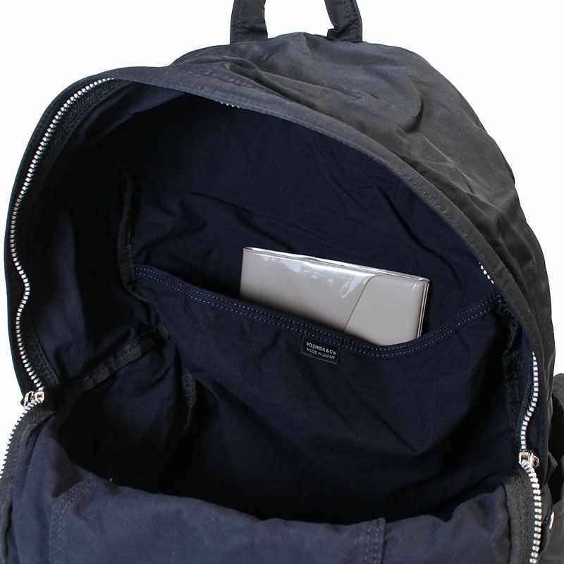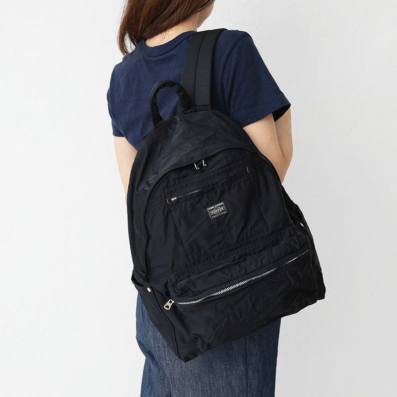 デイパックはシンプルなデザインながら、外装に複数のポケットを備えた機能的なデイパックです。