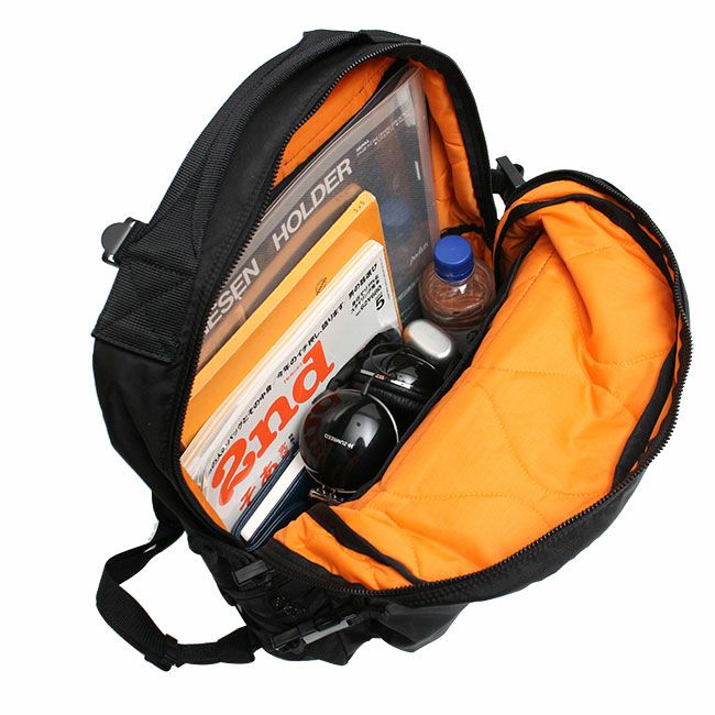 軍用品にたまに見られる偶発的な生地色の差をモチーフにした、ミリタリーテイストのカジュアルシリーズです。前面側のファスナーポケットには、中にオープンポケットがありますので、使用頻度の高い携帯などを整理して収納可能。背面側のベルクロポケットの中に、ウエストベルトが収納されてます。