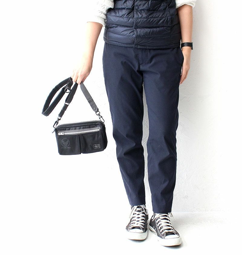フライングエースのマテリアルは当時のフライングスーツから着想を得て、メイドインジャパンの高い技術力で糸から組織まで新たに開発した完全オリジナルです。摩擦や屈曲性に強く滑らかで光沢感のあるナイロンフィラメントを高密度かつ軽さを兼ね備えたオックスフォードピケ調に織り上げました。表面にはシレ―加工を施し、独特な光沢感とハリ感を持たせています。 こちらは定番型の一つであるコンパクトな2WAYショルダーバッグです。お出掛けの際のバッグや旅先でのサブバッグとして、スマートフォンやウォレットなどの必需品を収納するのに最適です。ショルダーバッグとしてはもちろん、ストラップを取り外して単体のポーチとしても使用してもご使用いただけます。