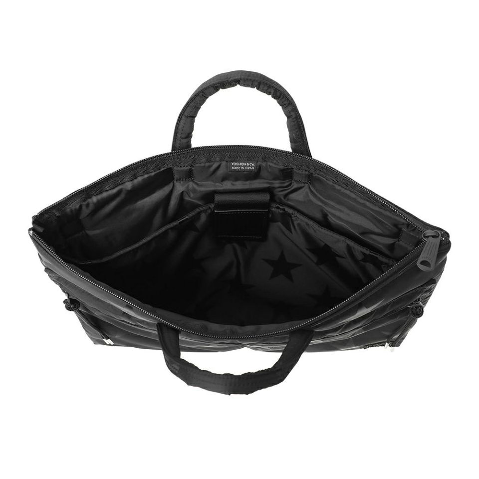 光の角度によって立体的な表情が浮かび上がる星柄とPORTER ロゴを組み合わせたオリジナルの生地は、ブラックワントーンで上品な印象に仕上げています。