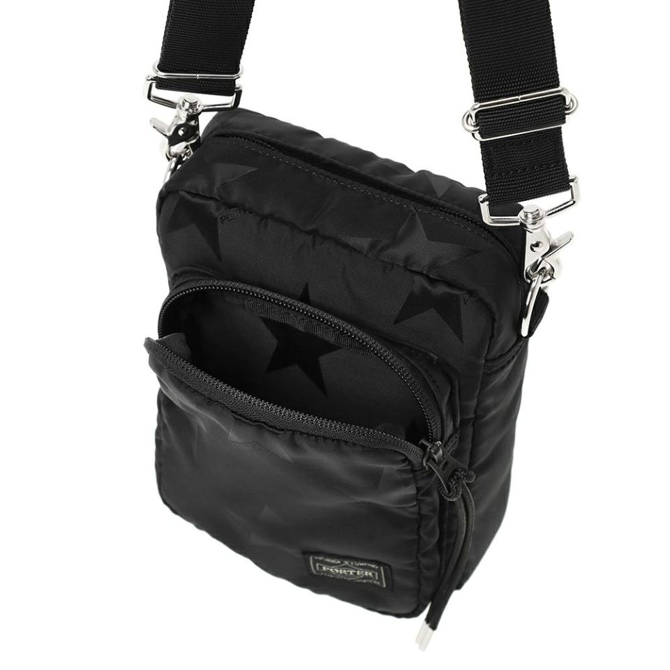 光の角度によって立体的な表情が浮かび上がる星柄とPORTER ロゴを組み合わせたオリジナルの生地は、ブラックワントーンで上品な印象に仕上げています。