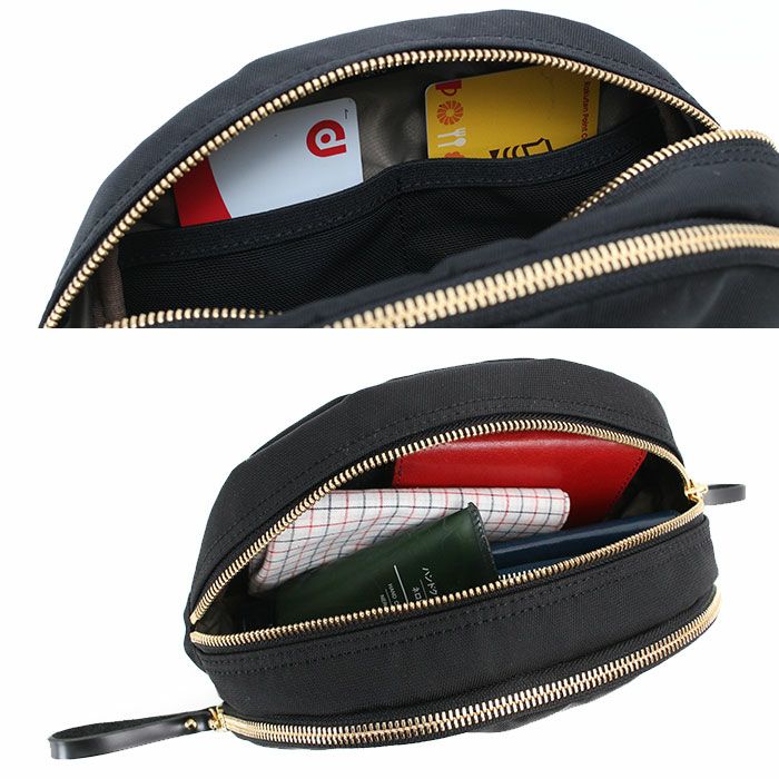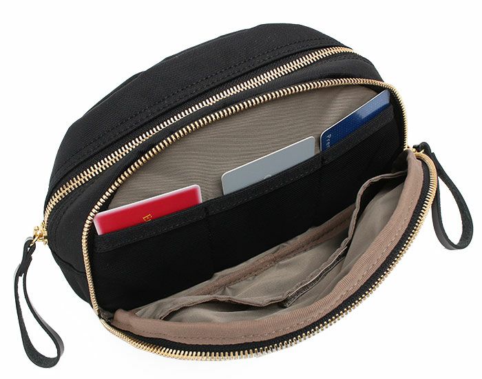 開閉口がハーフムーン型の本体に沿うようにデザインされているので、中身の出し入れがしやすくなっています。