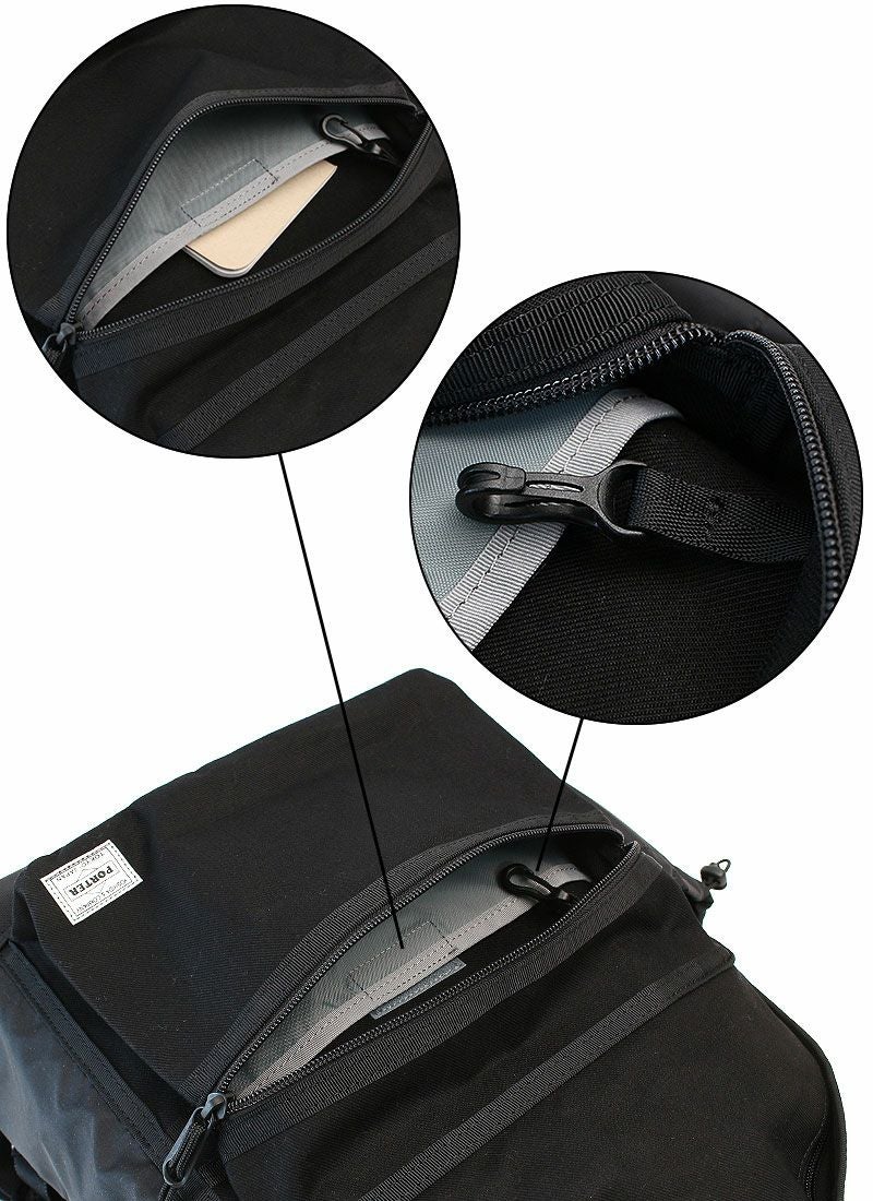 リフレクターにプリントしたPORTERタグ以外をオールブラックにすることで、落ち着いた印象にして幅広い年代、性別、服装に合わせやすいように仕上げています。