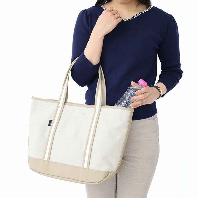 ナチュラルなシャンブレー生地が大人のスタイルを引き立ててくれる上品な雰囲気のトートバッグとなっています。