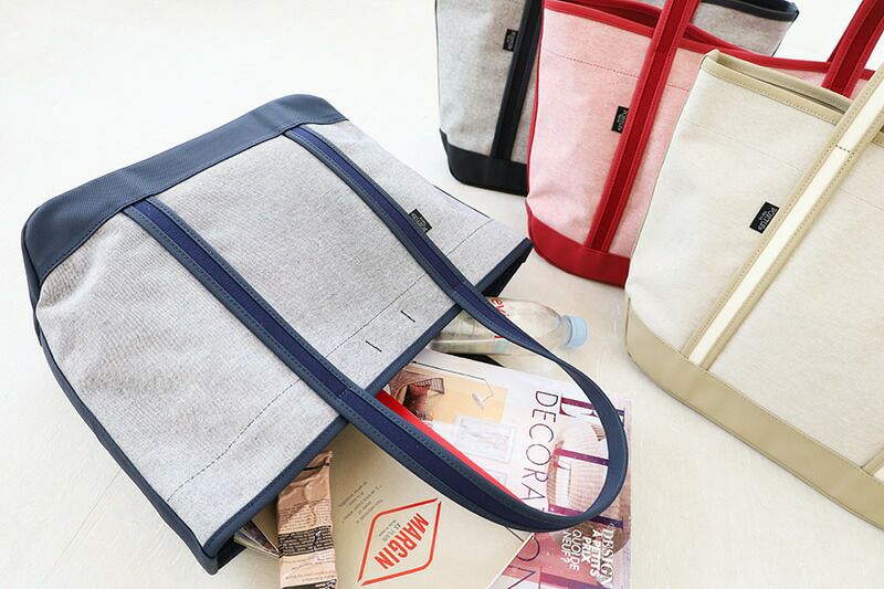 2010S/Sに発表したBOYFRIEND TOTEのシャンブレーバージョンがリニューアルです。 本体生地は、タテ糸に染めていない生の綿糸、ヨコ糸に先染めした色糸を使用した平織りの