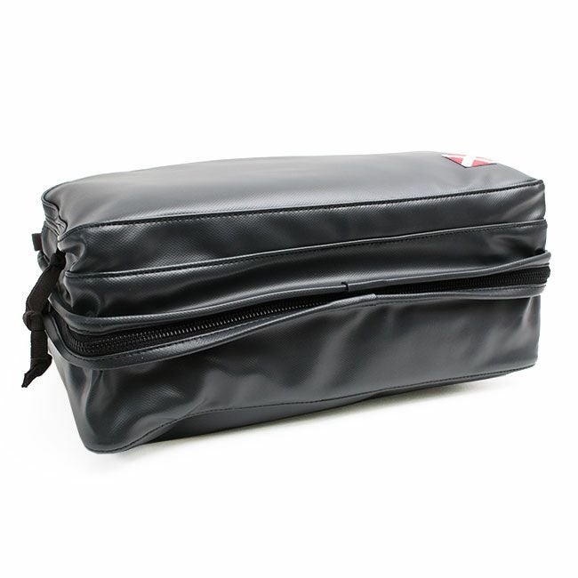 メイン素材には、レーヨンキャンバスに塩化ビニール(PVC)コーティングを施しており、耐久性や耐水性に優れています。ミリタリーテイストでなおかつ、使い込むほどに表情が増していくのが特徴です。シリーズの象徴である赤と白のブランドロゴが、デザインのアクセントになっています。