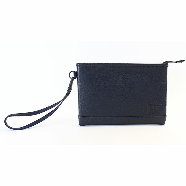 タッチ感の良いシュリンク革とシャープに見えるナイロンテープを組み合わせたレザーポーチ。