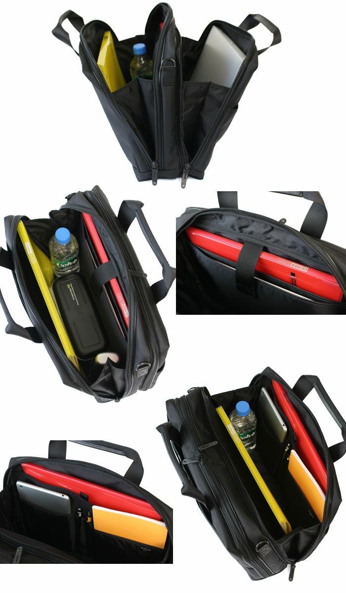 A4サイズがスッキリ納まる使い勝手の良いサイズで、手帳やペン類などの小物収納に配慮したサブ収納と、13インチのノートPC、タブレット収納機能の備わったメイン収納の2室構造になっています。