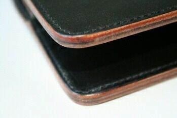 男っぽさをこれでもかと主張した作りのシリーズ《CASINO》 馬具用の革として用いられるブライドルレザー。 へりの処理を切り目にして、あえてそのコバ部分を塗らずに素材の生の色をアクセントとしてデザインされいるというこだわり。